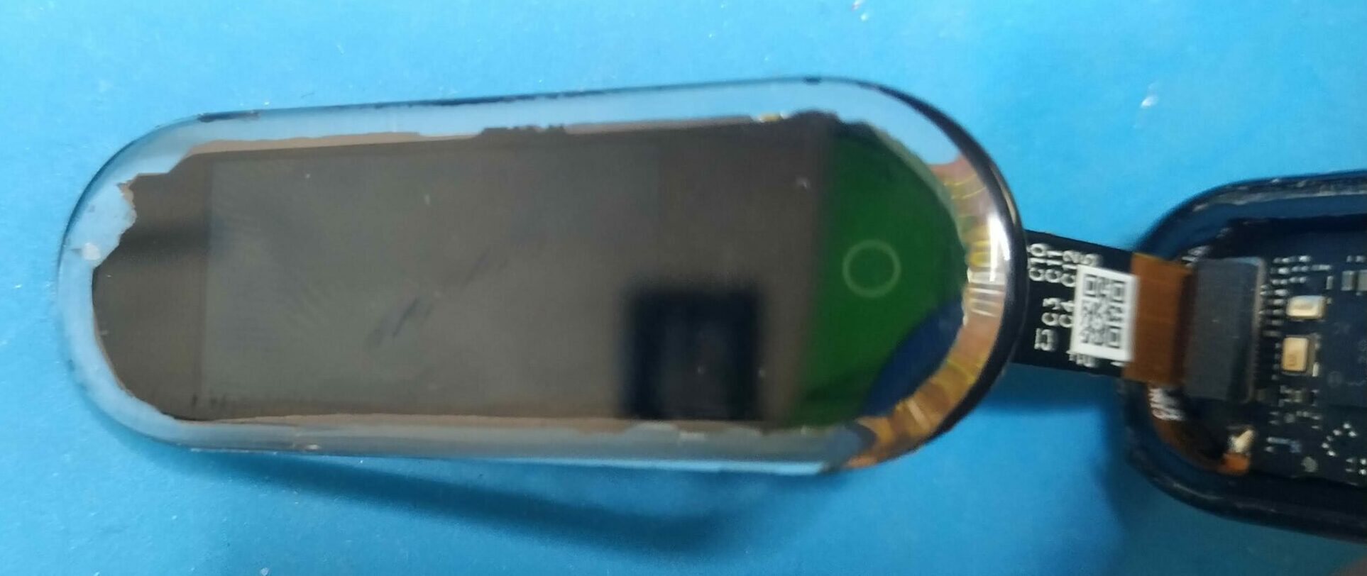 I decided to cut the lip that is covering the glass, so i could lift it from there. This worked pretty good, although the mi band would not win a beauty contest afterwards. In hindsight, I’m sure it is possible to lift the display glass with a very thin piece of metal or plastic, and a lot of heat to soften the glue.